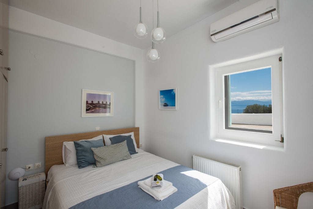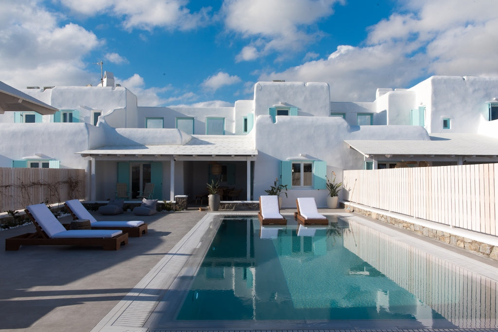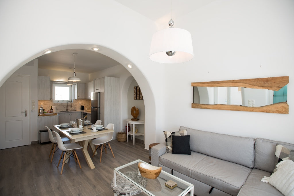 Villa Gold, with its Cycladic designed interiors is the perfect choice for guests wanting to experience all that Mykonos offers. For guests wanting to relax and enjoy the private outdoor space basking in the sunshine on poolside sun loungers or gathering under the outdoor lounge under the pergola. Guests can enjoy dining and socializing outdoors around the oversized live edge dining table while overlooking their private pool.